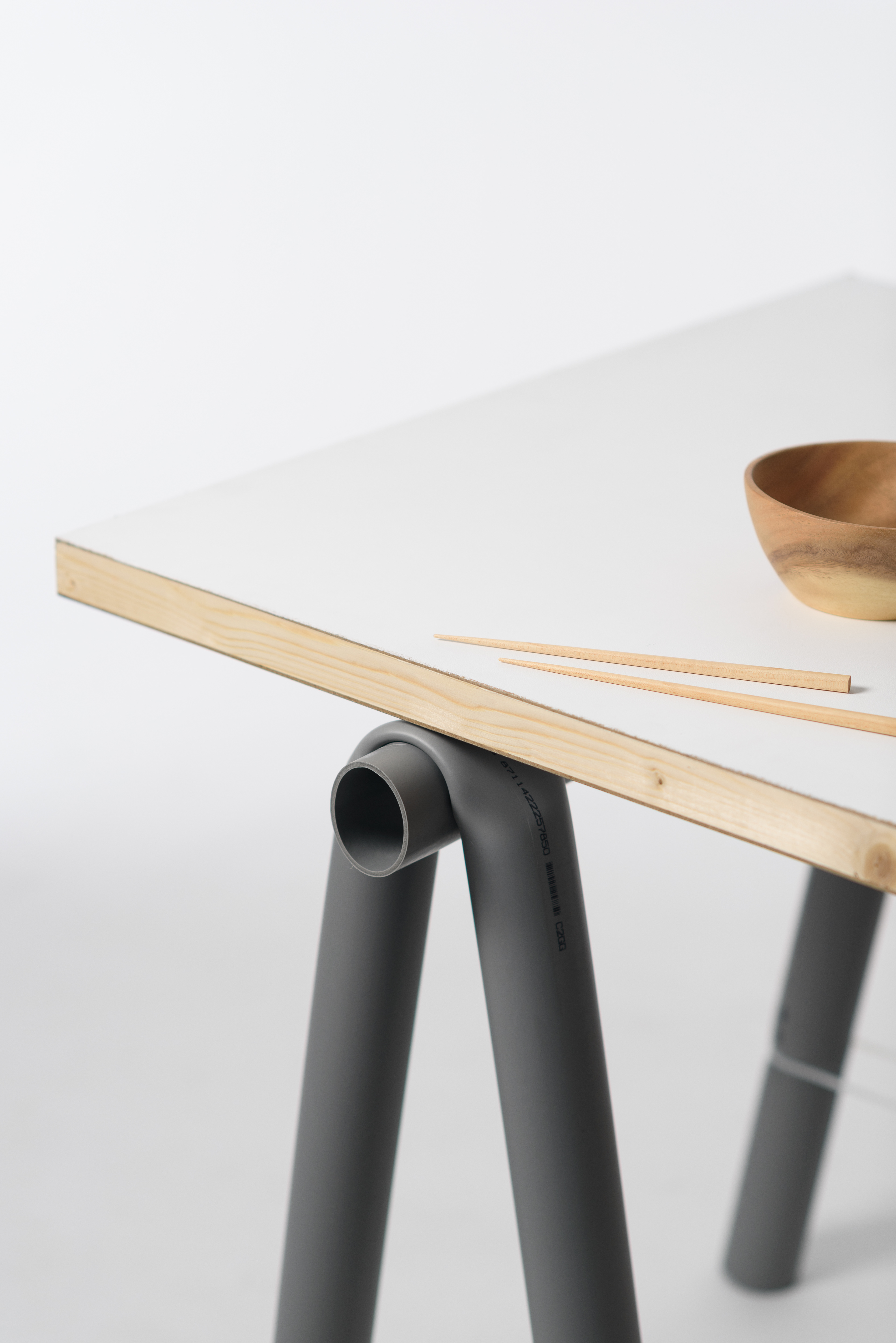 Résistant à l’humidité et à la corrosion grâce à ses propriétés intrinsèques, le tube de PVC représente une ressource fréquemment disponible sur les lieux sinistrés, où il peut être récupéré et réemployé. Léger, modulaire et facile à transformer sans outils lourds ni savoir-faire spécialisé, le PVC se prête à une mise en œuvre rapide. Les colliers de serrage (serre-flex), utilisés comme système d’assemblage, constituent une solution robuste, économique et simple à déployer à grande échelle dans le cadre de missions humanitaires.